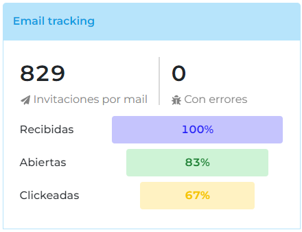 Tienes el detalle de las invitaciones enviadas y por sus respectivos canales, para así poder llevar un control durante todo el proceso sin perderte de ningún detalle.